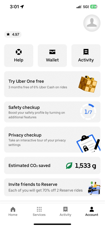 Go back to the main screen, enter your destination in the app and reserve a ride.